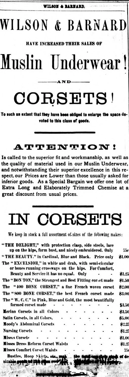 1889 Zachary and his wife are running a boardinghouse in Denver, on Logan St downtown. They have a daughter named Nellie, who is the little girl who wore this corset. Like many surviving pieces, this was bought for a teenager who decided, for reasons known only to teenagers, to never wear it. There are no flaws in the corset that we could find. The corset was placed in a trunk and forgotten about for a hundred years.